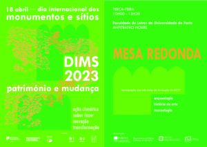 Associe-se à Comemoração do Dia Internacional dos Monumentos e Sítios 2023, dedicado ao Património e Mudança (Ação Climática. Saber Fazer. Inovação. Transformação), participando na Mesa Redonda que terá lugar no Anfiteatro Nobre da Faculdade de Letras da Universidade do Porto, no dia 18 de abril, entre as 10h e as 12h30, com colaboração científica de estudantes dos três Ciclos de Estudos do DCTP.