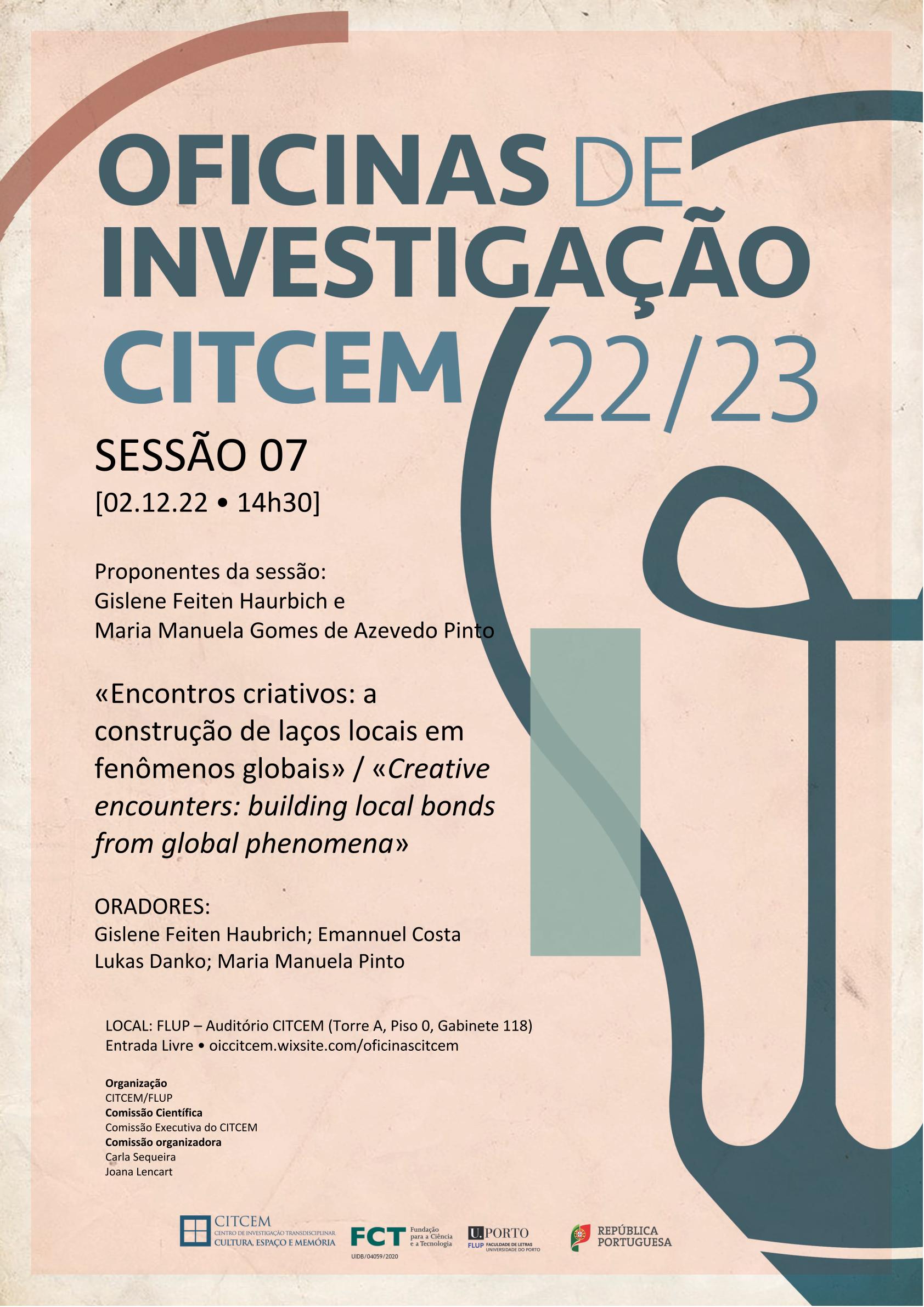 7.ª SESSÃO OIC 2022/23 «Encontros criativos: a construção de laços locais em fenômenos globais»